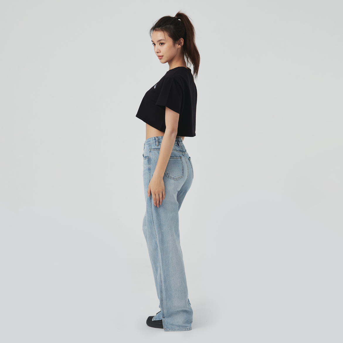 短版剪裁,隨性搭配高腰下身,輕鬆打造俐落比例。